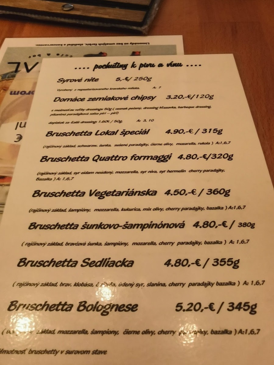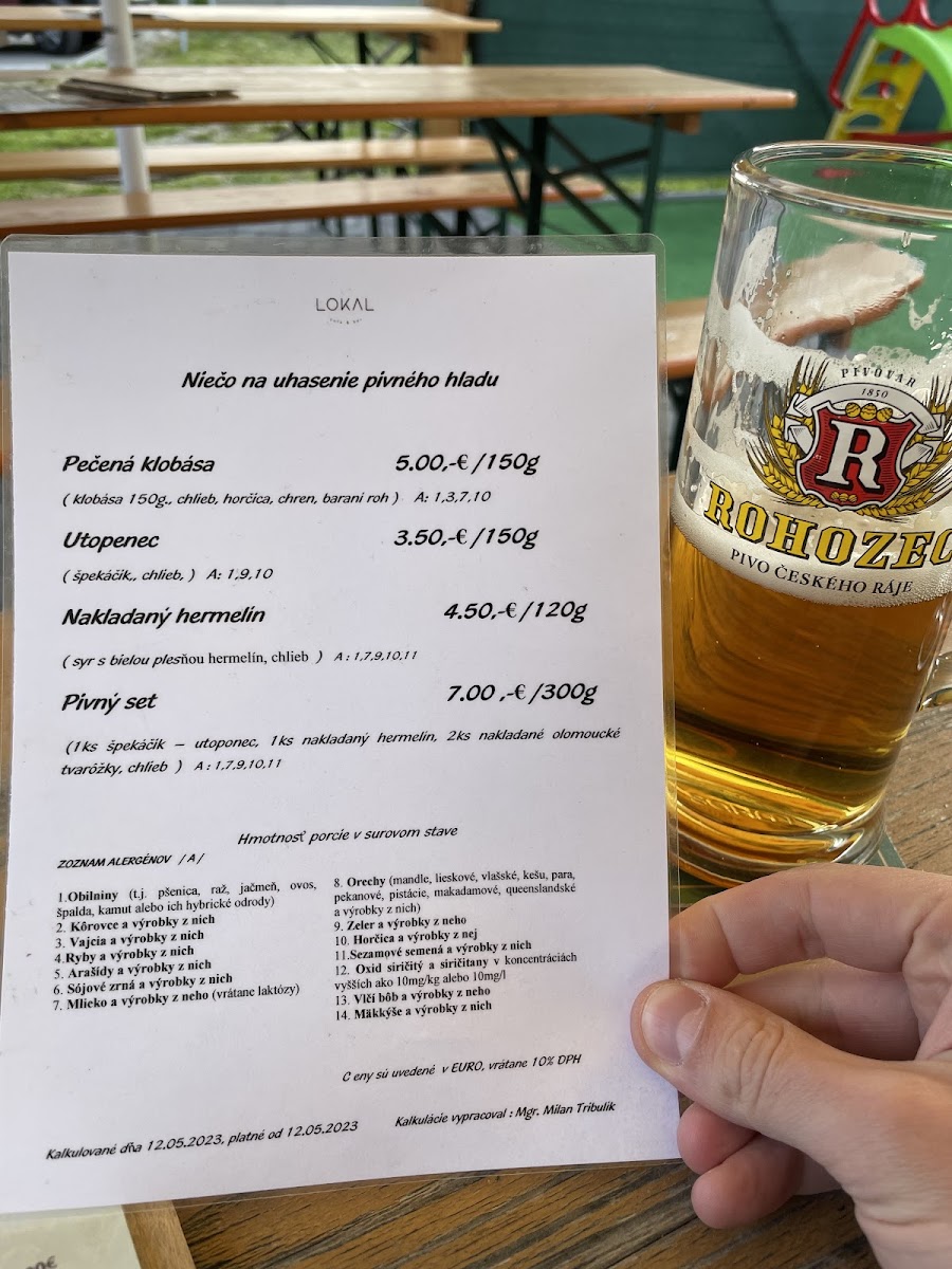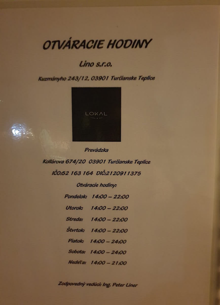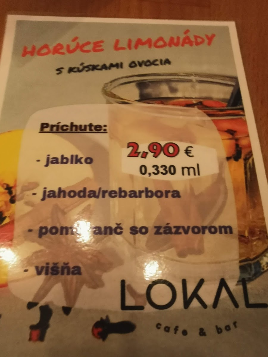 The menu at LOKAL cafe & bar offers a variety of options suitable for different times of the day, including coffee breaks, light meals, and casual dining experiences. The selection includes a range of hot and cold beverages such as coffee, cocktails like Campari, and a diverse choice of beers including Beer Rohožec and Pilsner Urquell Pifko.